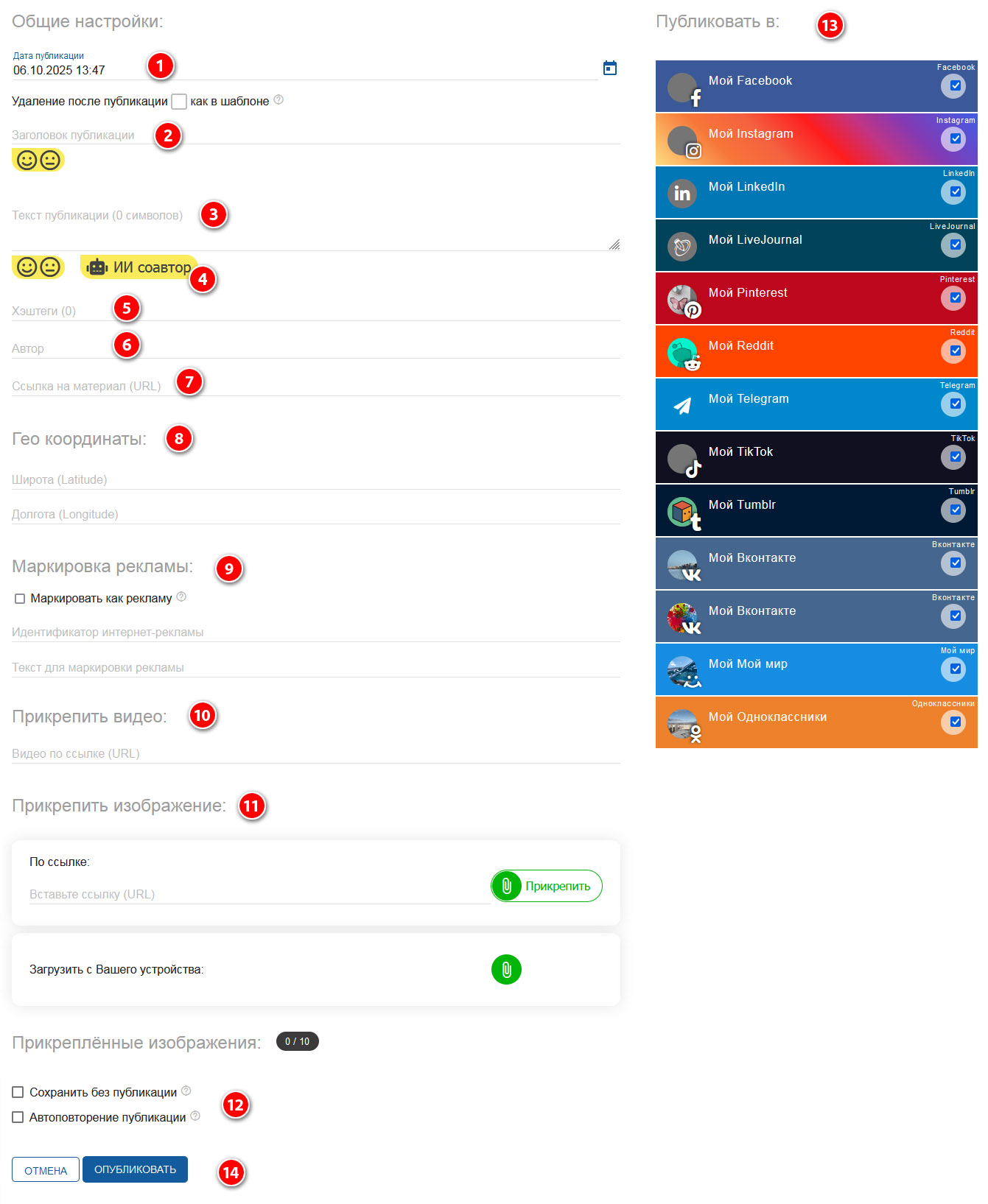 13. Выберите, в каких соцсетях вы опубликуете данный материал.